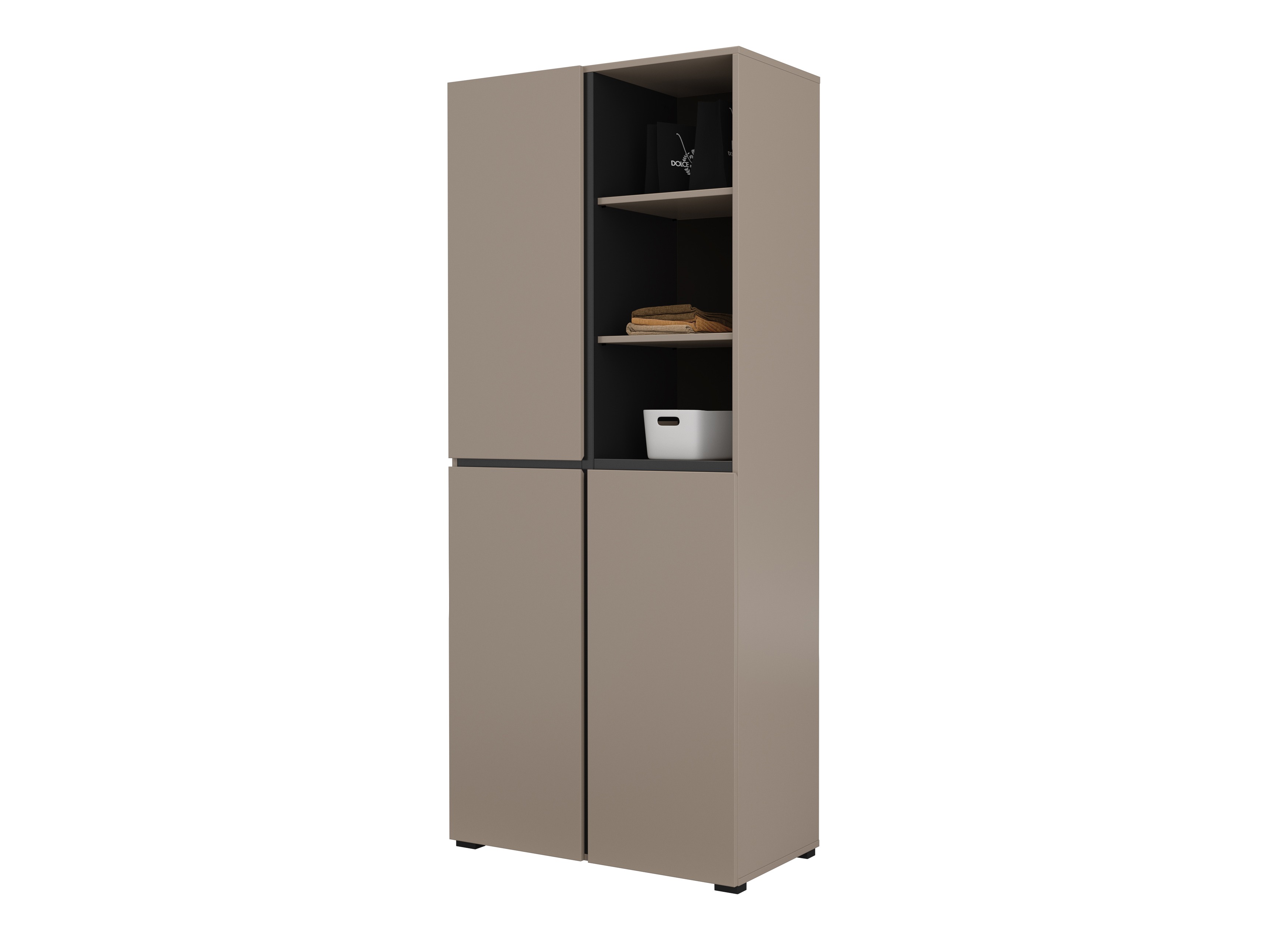 Meg vagyok elégedve a kisbútorral. Dizájnt kölcsönöz neki a fekete csík, harmonizál a matt fehér szinével. Letisztult forma. Előnye a nyitott polc, ahol könyvet, dekorációt tudok elhelyezni. A zárt polcrendszer variálható. Kiegészítőnek a sarokban is jól mutat, nem kötött, beilleszkedik. /mivel 3 rész ajtóval zárt, kisebb, ritkán használt tárgyak elrejtésére alkalmas./ Összeszerelése egyszerű, pontosan illeszkedik, stabil, finoman megmunkált.