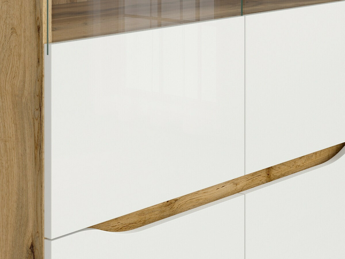 A hangulatos és egyben modern enteriőr kialakításához fontos odafigyelni a bútorok színére és formájára. Miért érdemes odafigyelni erre a gyűjteményre? Ez a bútor segít létrehozni egy modern belső teret, enyhe skandináv stílusú fűszerekkel. Könnyedén alakíthatja a bútorokat a hálószobában és a nappaliban egyaránt. A "Wotan" tölgy színe igazi klasszikus, és tökéletesen illeszkedik bármilyen belső térbe. A kollekcióban fényes fehér színnel párosul, szemet gyönyörködtető duót alkotva. A fa mintázata természetes megjelenésű bútordizájnt hoz létre. A bútorokban a rejtett kilincsek elvét alkalmazzák, ami azt jelenti, hogy az ajtók és fiókok formája lehetővé teszi, hogy gond nélkül, ujjlenyomatok vagy foltok hagyása nélkül használhatóak legyenek.