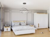 Ez a bútorkollekció egyedülálló abban, hogy a bútormodellek széles választékát kínálja különféle otthoni terekhez. Hozzon létre szilárd belső teret a nappaliban és a hálószobában egyaránt. Mi van, ha a bútor a folyosón is elfér? Vagy az irodában? Mindez lehetséges ezzel a kollekcióval. A világos színpaletta kicsiben és nagyban is jól mutat. A bútorok homlokzatán a fényes fehér szín dominál, melyet a fa színű részletek tökéletesen kiegészítenek. A fa színe és mintái szépen feltárulnak a bútorasztalokon, meghitt hangulatot kölcsönözve. A fogantyús megoldás is megragadja a tekintetet, ami nemcsak fogantyúként, hanem dekor részletként is megállja a helyét. A dolgok tárolására minden bizonnyal lesz elég hely, a bútorokban rengeteg fiók és polc található. További varázst a beépített energiatakarékos LED világítás biztosítja. Ezzel a megoldással kellemes fényt élvezhet, amely kiemeli a fa színű betéteket. A csendes záródási mechanizmus megvédi az ajtókat és a fiókokat a gyors becsukódástól.