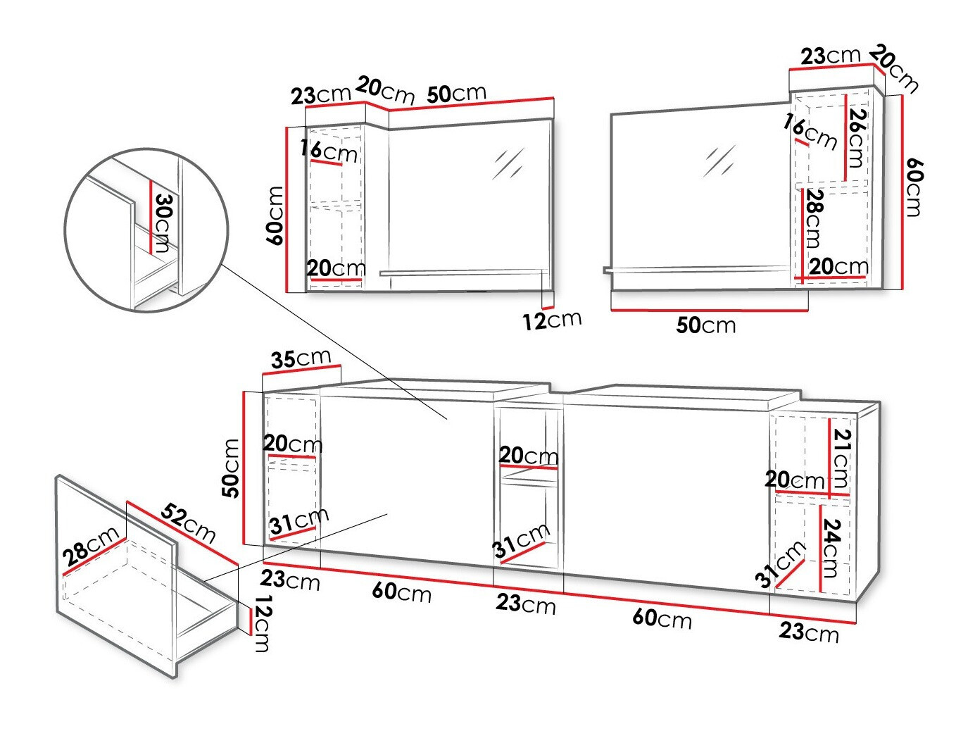 Fali rögzítési információk. A falra szerelhető vagy akasztható bútorokhoz nincs rögzítőcsavar, ezért külön kell gondoskodni róluk. A különböző típusú falak speciális csavarokat vagy akár változó fúrási mélységet igényelnek. Válassza ki a rögzítőelemeket a bútor súlya és a fal típusa (pl. gipszkarton, falazat, fa stb.) alapján. A minőség és a biztonság érdekében kifejezetten az Ön faltípusának megfelelő csavarokat használjon.