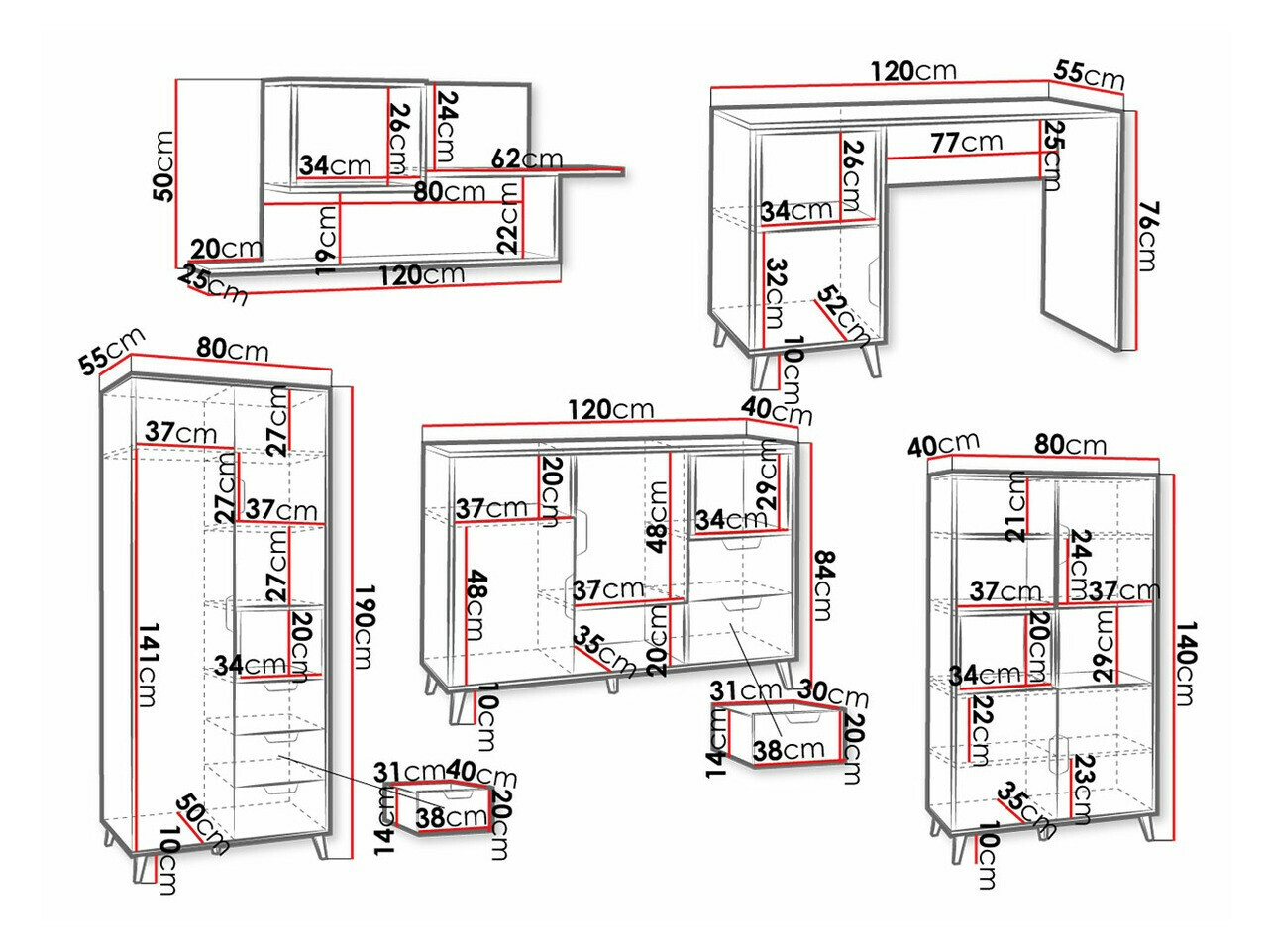 140 x 80 x 40 cm