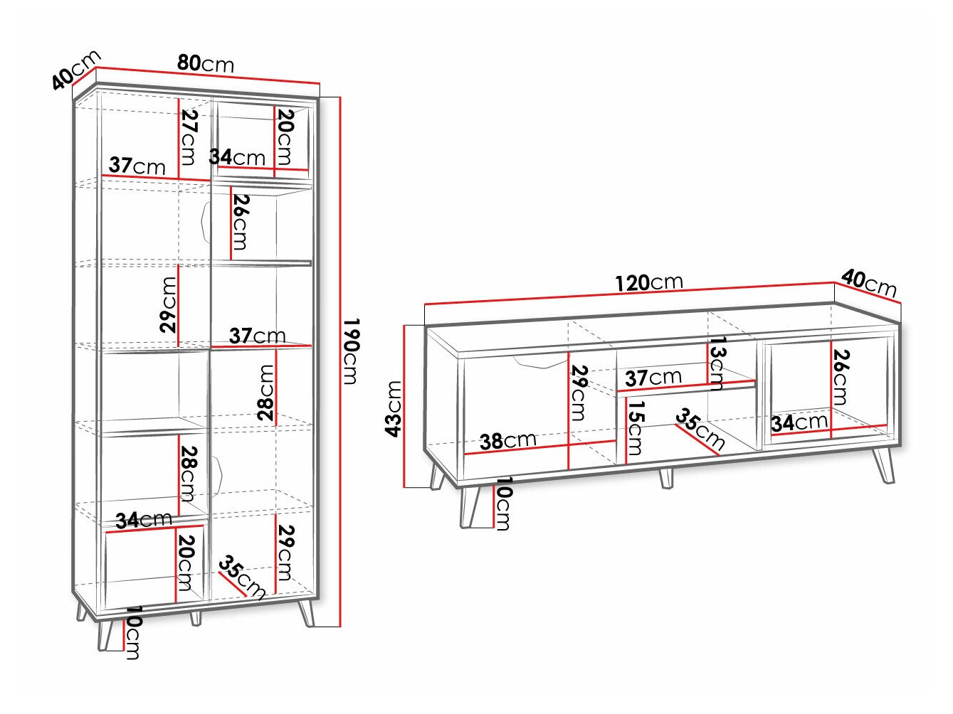 43 x 120 x 40 cm