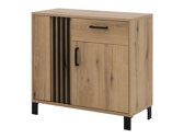 Egy tetszetős kialakítású és praktikus bútorkollekció, amely esztétikus megjelenést és kényelmes tárolást biztosít bármely helyiségben. A kollekció bútorait fekete műanyag lábak és fogantyúk díszítik, amelyek kifejezővé teszik őket. A modern kontrasztos dizájnt a tölgyfa egészíti ki szín, fekete részletekkel kombinálva.Ez a kombináció nem csak látványos, hanem a természetesség és a melegség érzetét is kelti otthon.A kollekció üvegpolcai és üvegajtóbetétei edzett üvegből készülnek, ami biztonságosabb és tartósabb, mint a hagyományos üveg. Ezen kívül lehetőség van a kollekcióhoz külön megrendelni az energiatakarékos LED világítást, mely modern és világosabb akcentust varázsol otthonába Ezzel a kollekcióval könnyedén alakíthat ki harmonikus nappalit vagy előszobát, vagy kiegészíthet bármilyen mást helyet az otthonában.
