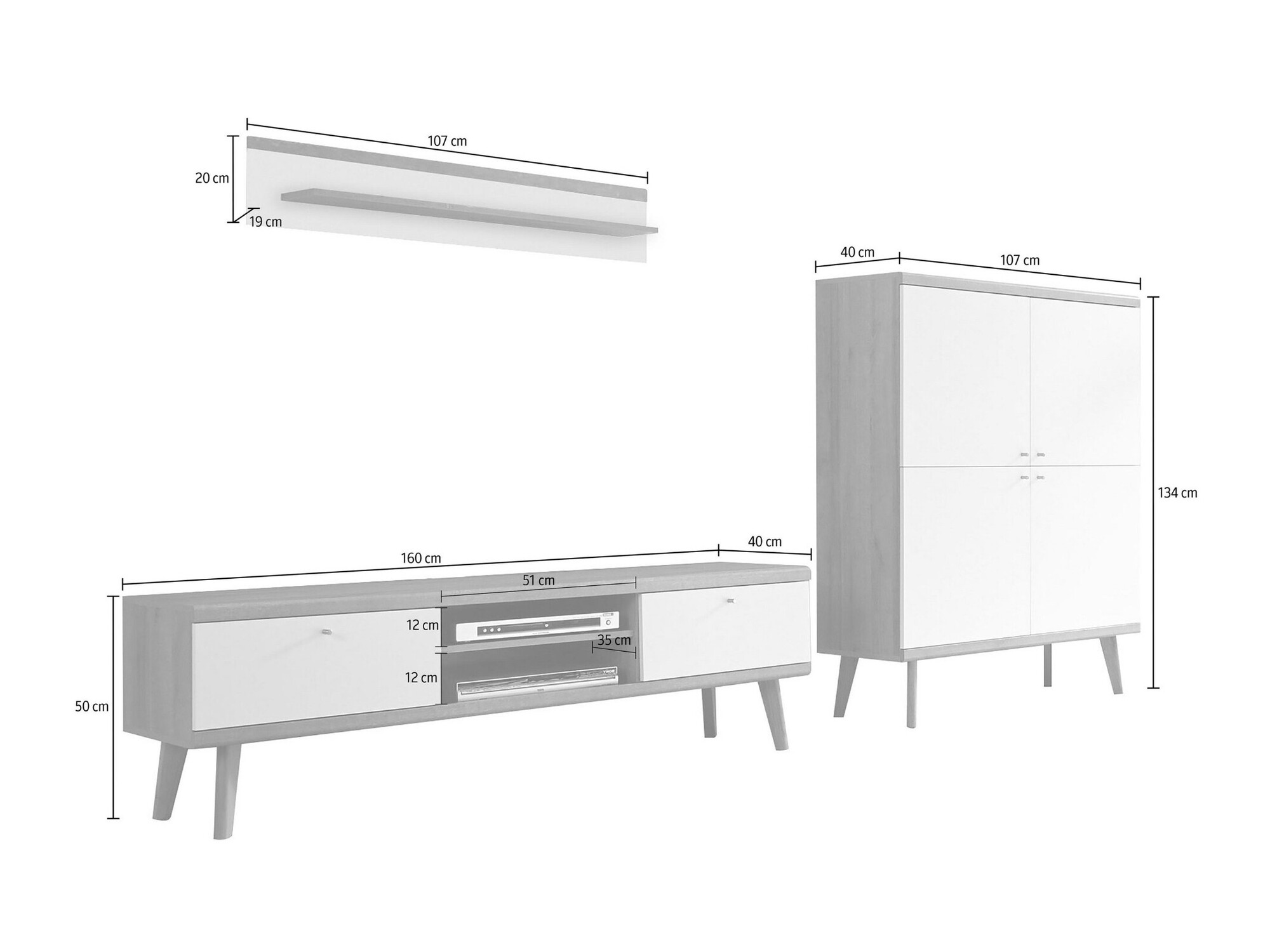 Függő polcméretek: