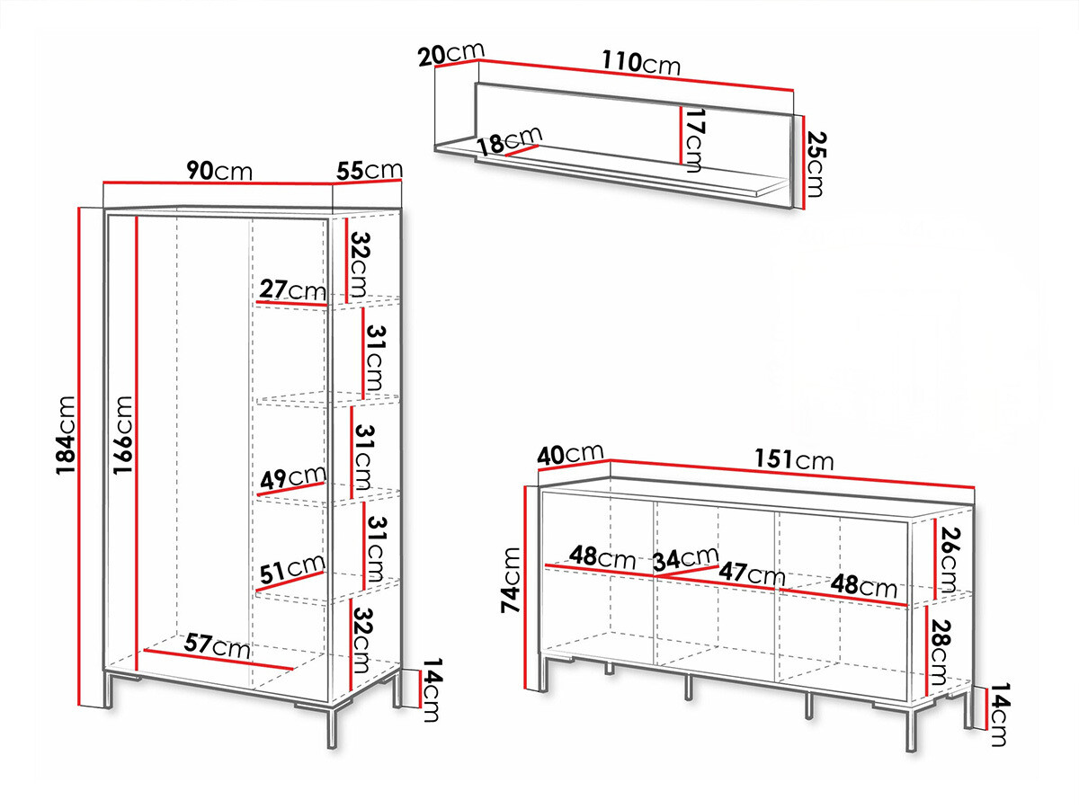 Szekrény méretei: