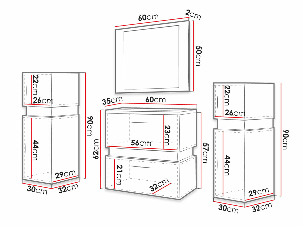 Mosdószekrény méretei: