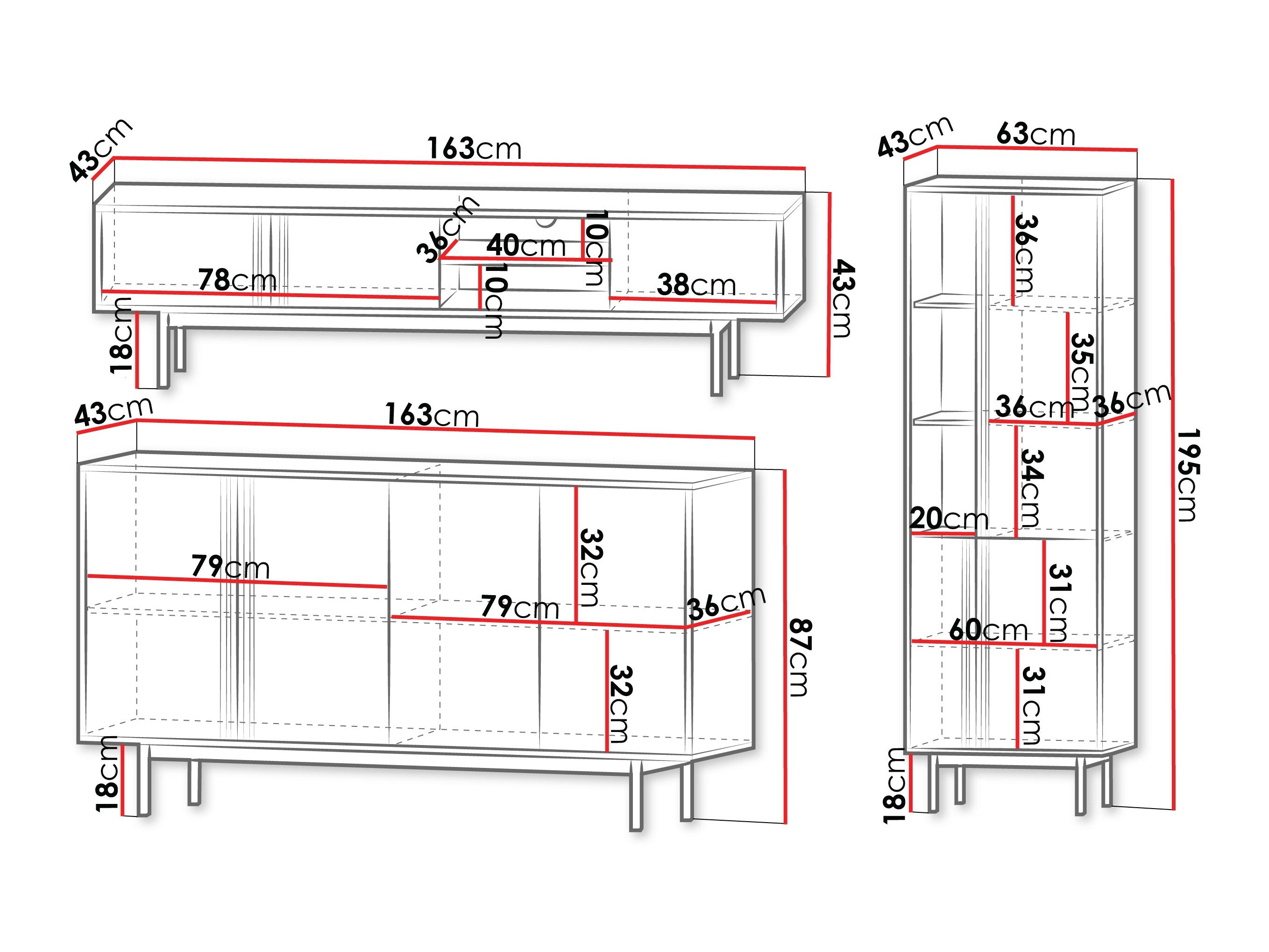 43 x 163 x 43 cm