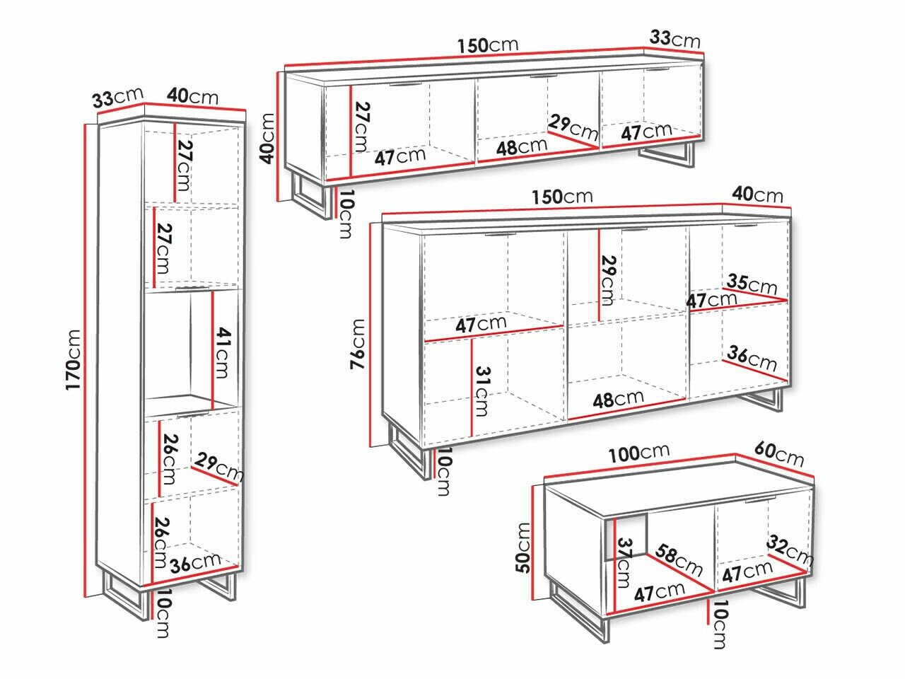 40 x 150 x 33 cm