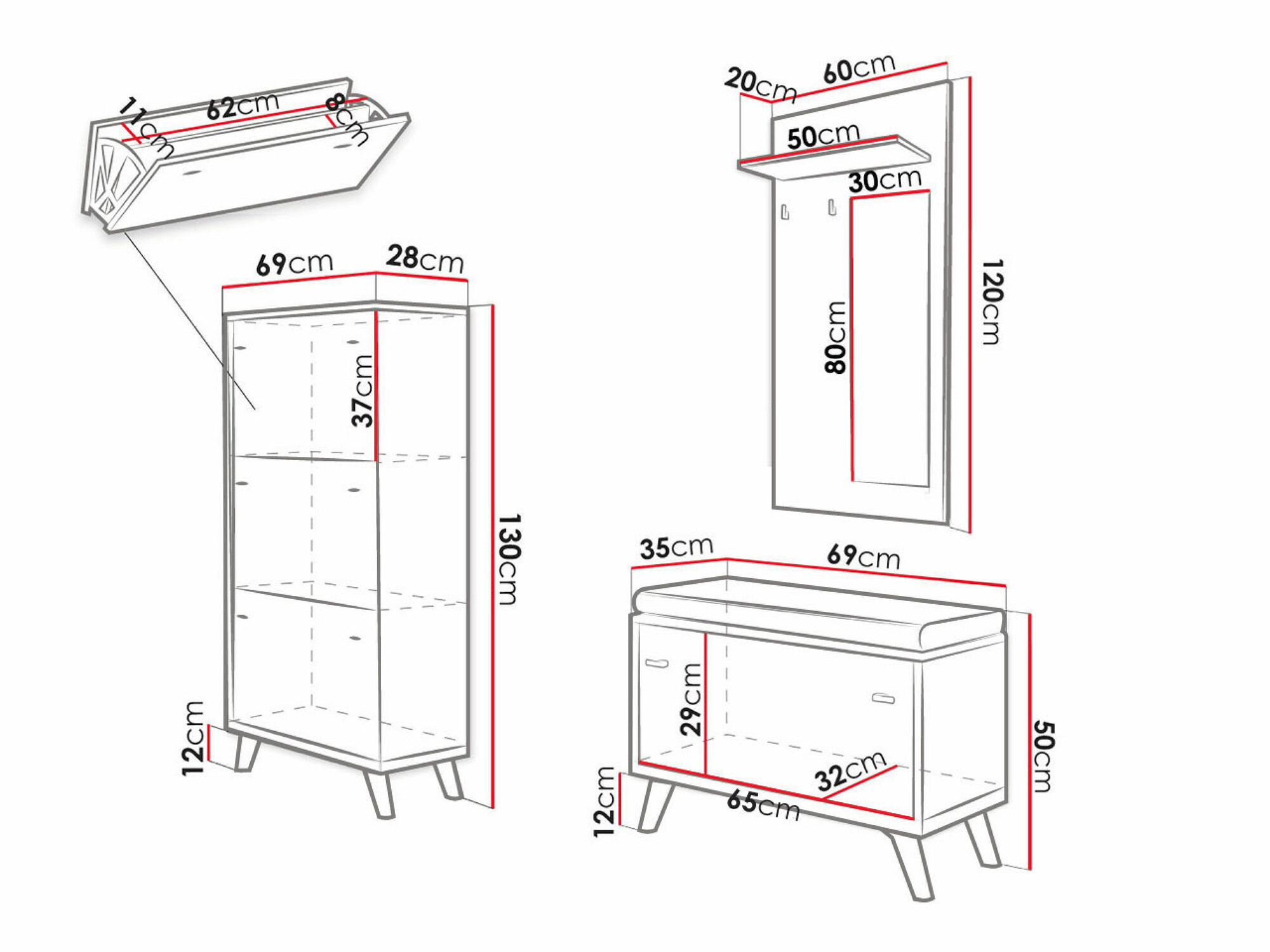 A bútor pontosan olyan, mint a képeken! Szűksége miatt egyáltalán nem zsúfolja össze a csarnokot, bár én kis terembe tettem. Az egyetlen negatívum, hogy a nagyobb méretű csizmák/csizmák nem nagyon férnek el a cipőtartóban