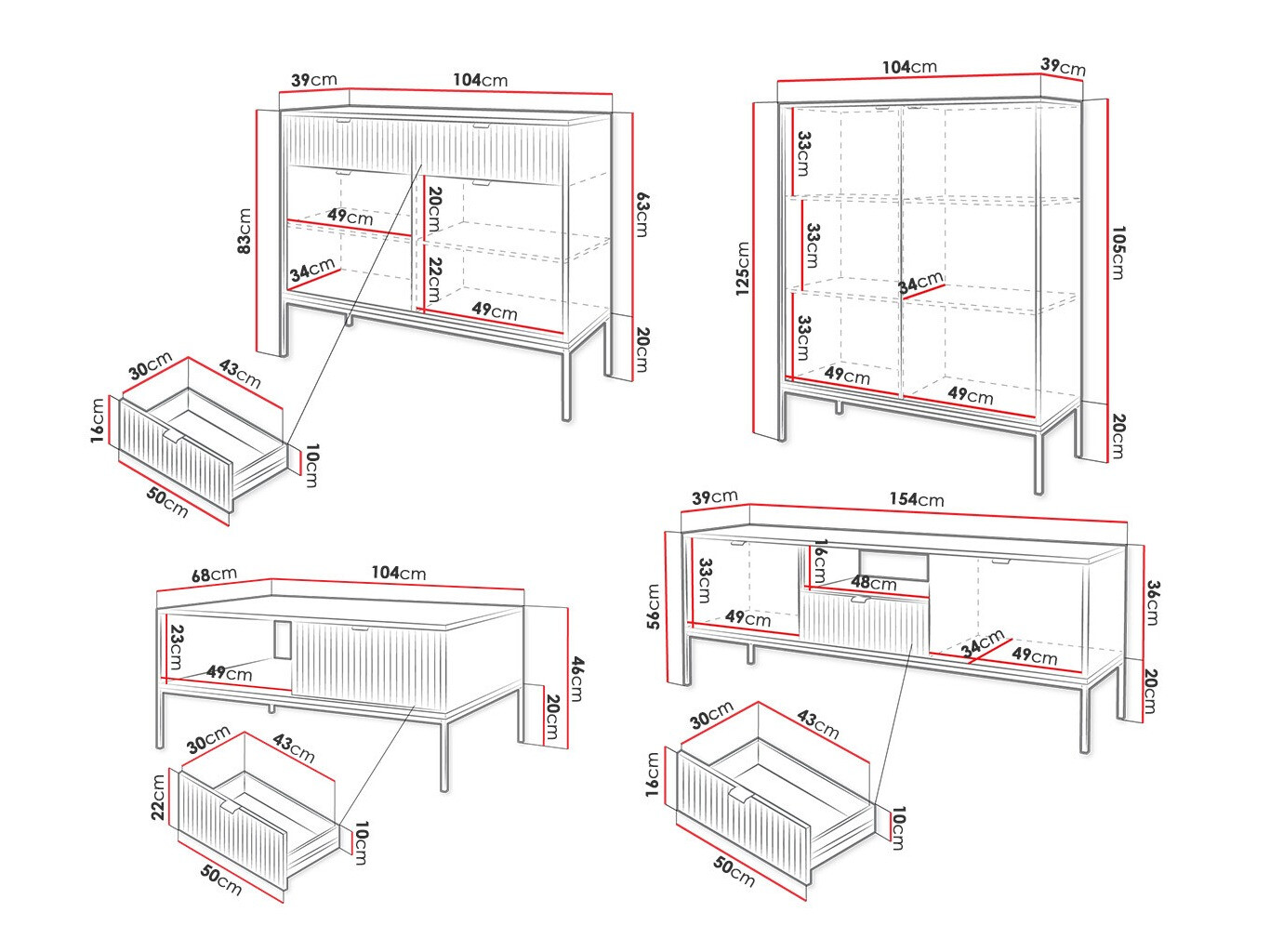 Komód méretek: