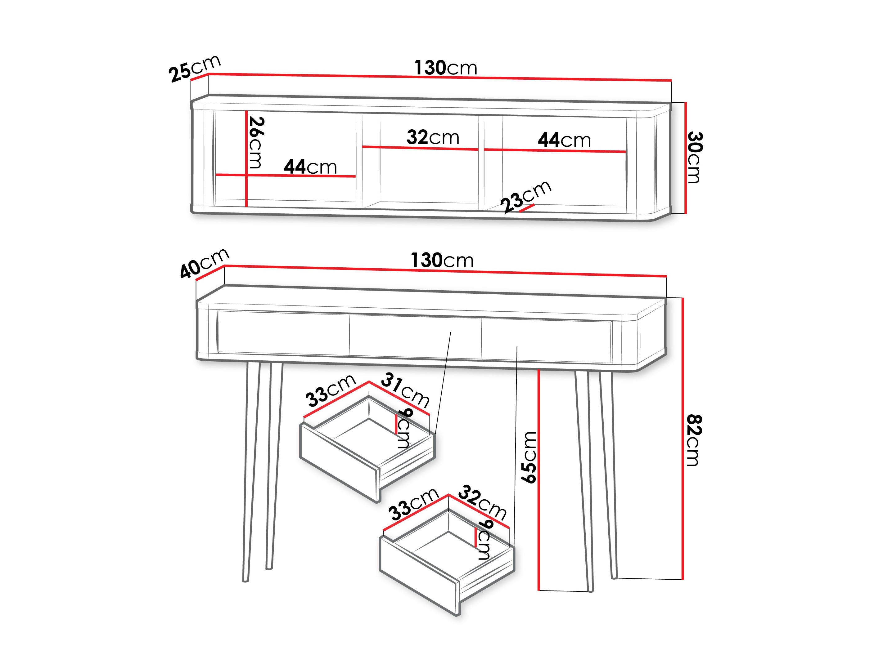 30 x 130 x 25 cm