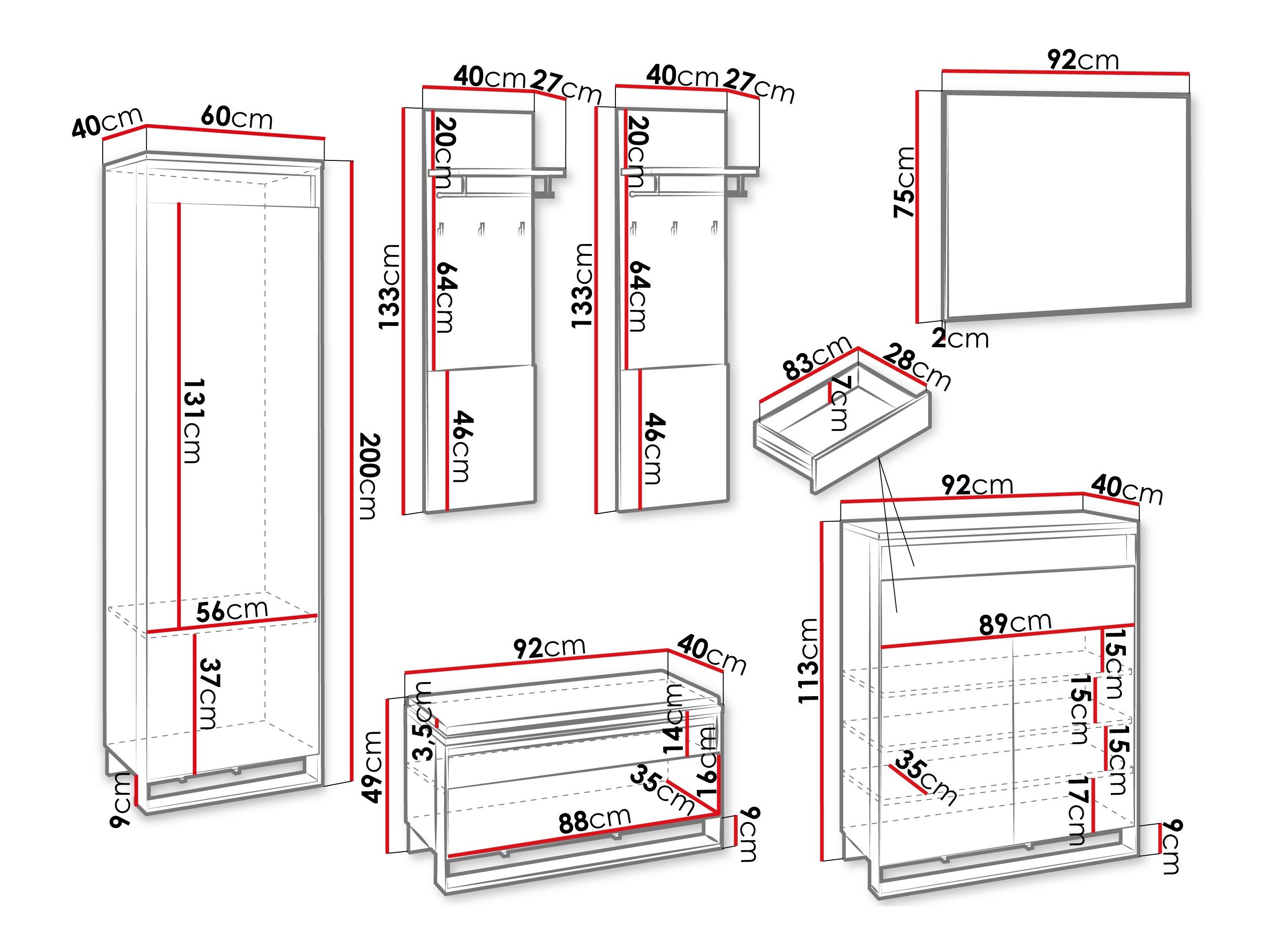 49 x 92 x 40 cm