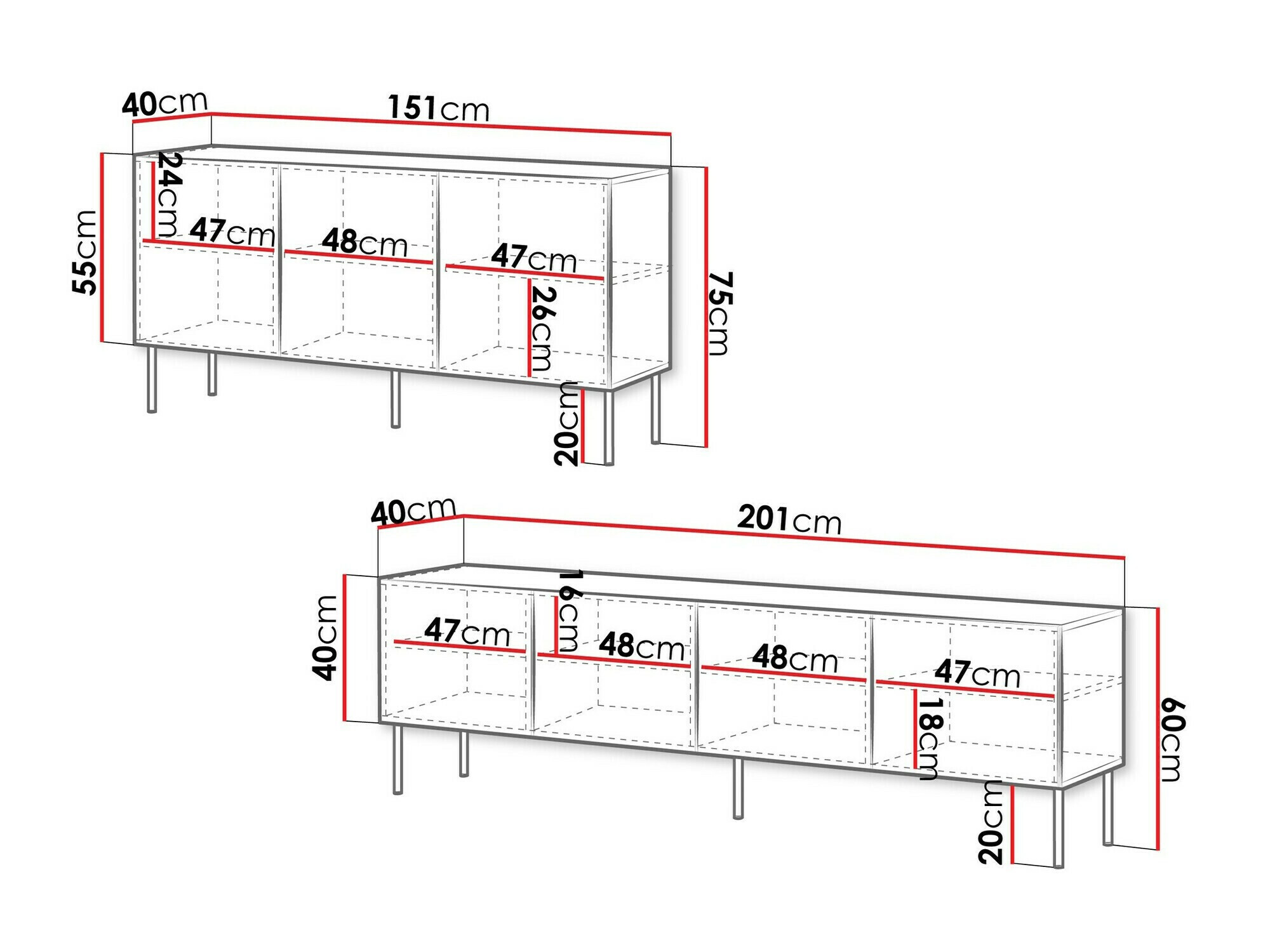 60 x 201 x 40 cm