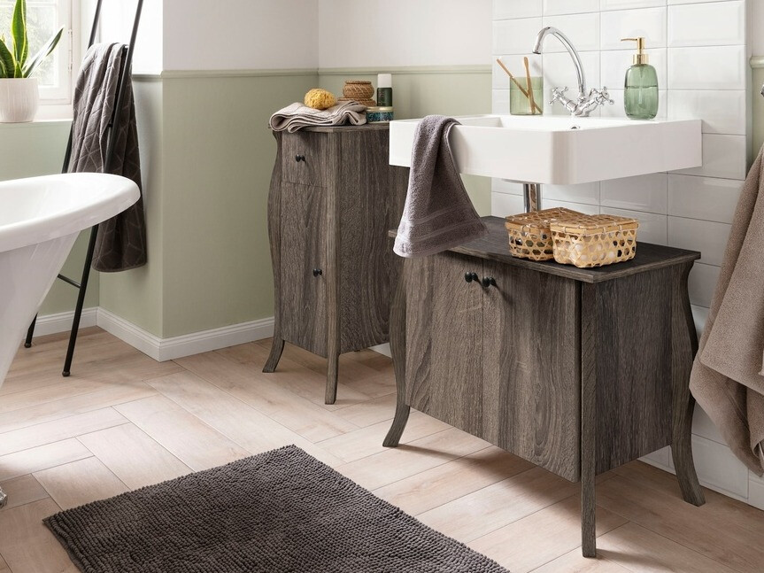 Ez a fürdőszobabútor kollekció azoknak készült, akik értékelik a klasszikus stílust és kényelmet. Nagy figyelmet fordít a részletekre és a stílusra. A kollekció bútorainak fém fogantyúi eleganciát és kifinomultságot biztosítanak, a faforgácslapból készült bútorlábak pedig kecsességet adnak. Az állítható polcok lehetővé teszik, hogy az Ön igényeihez alkalmazkodjon. A kollekció bútorai környezetbarát fából készültek. A klasszikus stílus ihlette kollekció minimalista dizájnelemeket tartalmaz, amelyek extra bájt kölcsönöznek fürdőszobájának.
