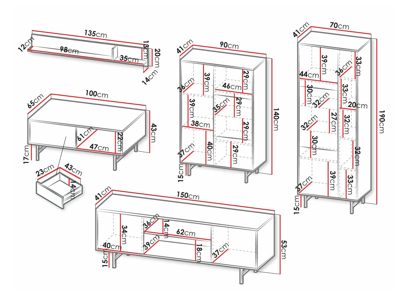 43 x 65 x 100 cm