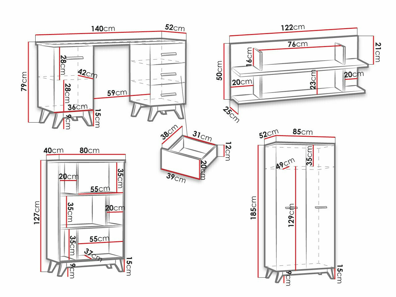 127.3 x 80 x 40 cm