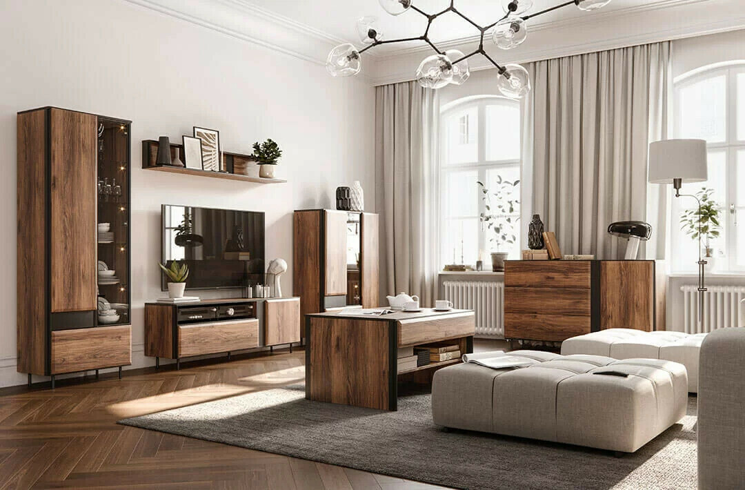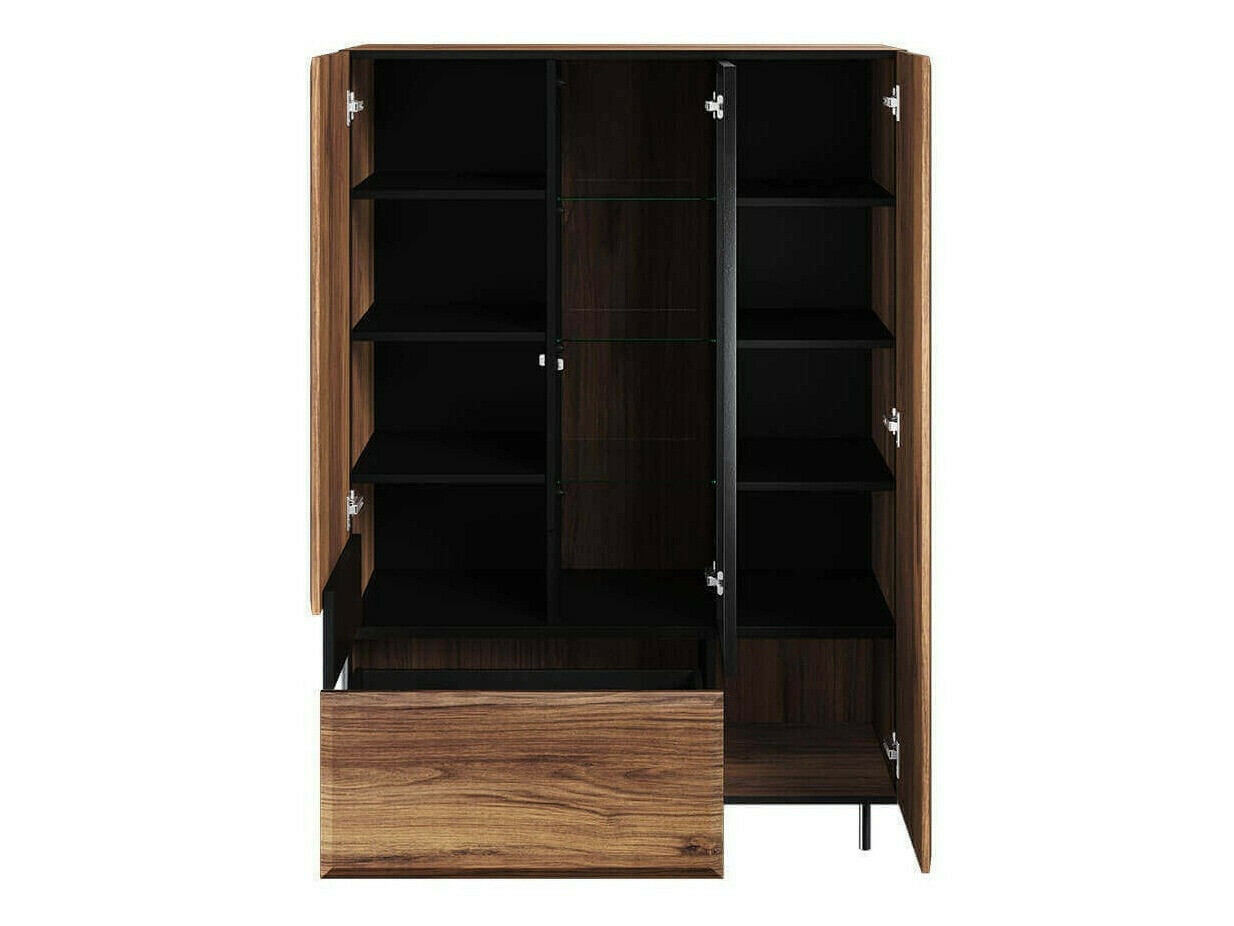 Amikor látja a kollekciót, a rendkívül elegáns bútorok megragadják a tekintetet. A fekete és a "Catania" tölgy színek kombinációja különösen fényűzőnek tűnik, ugyanakkor melegséget és hangulatot áraszt. A fa színű homlokzatok nincsenek túlterhelve felesleges részletekkel, a fém szegélyek pedig a modern dizájnt teremtik meg. A vonalak és a sziluettek világosak, nincsenek túlterhelve felesleges részletekkel, minden szépen illeszkedik az egészhez. Edzett üveg, amelyet a vitrinekben használnak, ez hőkezelt üveg, amelynek mechanikai ellenállása 5-6-szor nagyobb, mint a hagyományos üveg. A LED -es világítás segít felpezsdíteni a vitrineket, amelyeket ezenkívül megrendelhet és beépíthet a vitrinekbe. Az apró részletek, mint például a fém bútorlábak, tökéletesen illeszkednek a bútortervezéshez. A bútorok beépített csendes zárómechanizmussal rendelkeznek, melynek köszönhetően az ajtók és a fiókok közvetlenül zárás előtt leállnak, és lassan behúzódnak, hogy ne legyen zaj. A "Push to open" mechanizmus lehetővé teszi az ajtók és fiókok egyetlen érintéssel történő kinyitását.