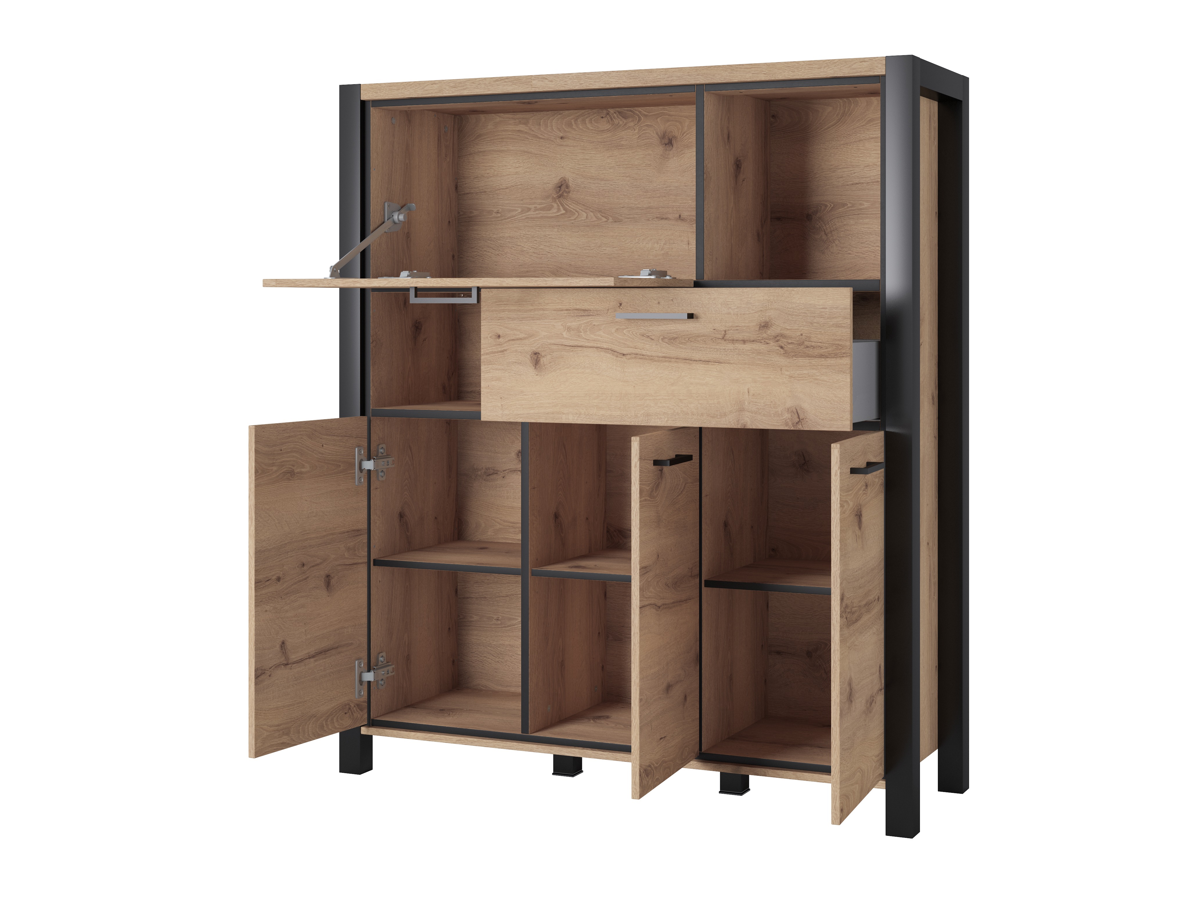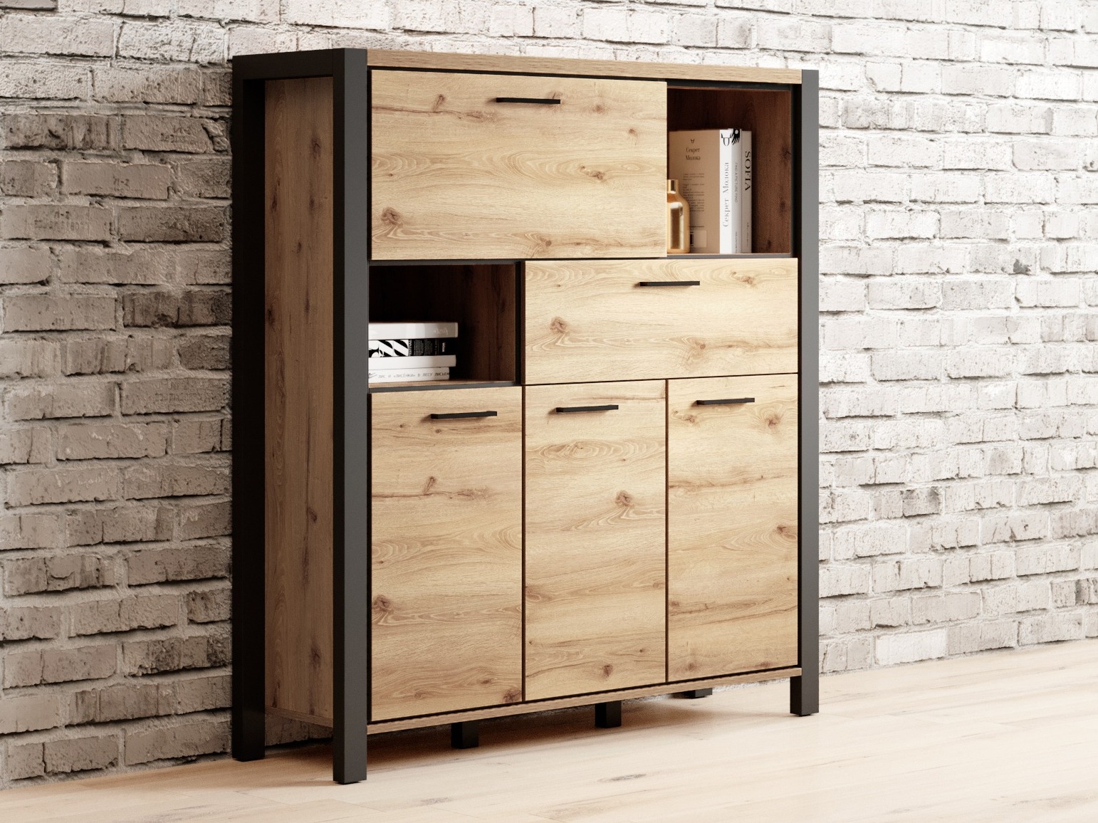 Ez a kollekció az ipari enteriőr szerelmeseinek készült. A fém fogantyúkat világos tölgy színű homlokzatokkal kombinálják, amelyek a fa erezetére utalnak. A fogantyúk formája tökéletesen illeszkedik az egész dizájnba. A bútorokat matt fekete élek emelik ki, amelyek kiemelik a bútorok szigorú sziluettjét. A kollekció egyik fő jellemzője a tágasság. A rendkívül tágas bútorrészek biztosítják, hogy minden megtalálja a helyét. Ez a kollekció lehetővé teszi, hogy különösebb erőfeszítés nélkül indusztriális-jellegű belső hangulatot teremtsen otthonában. Még otthonosabb légkört teremthet, ha LED világítást is választ.