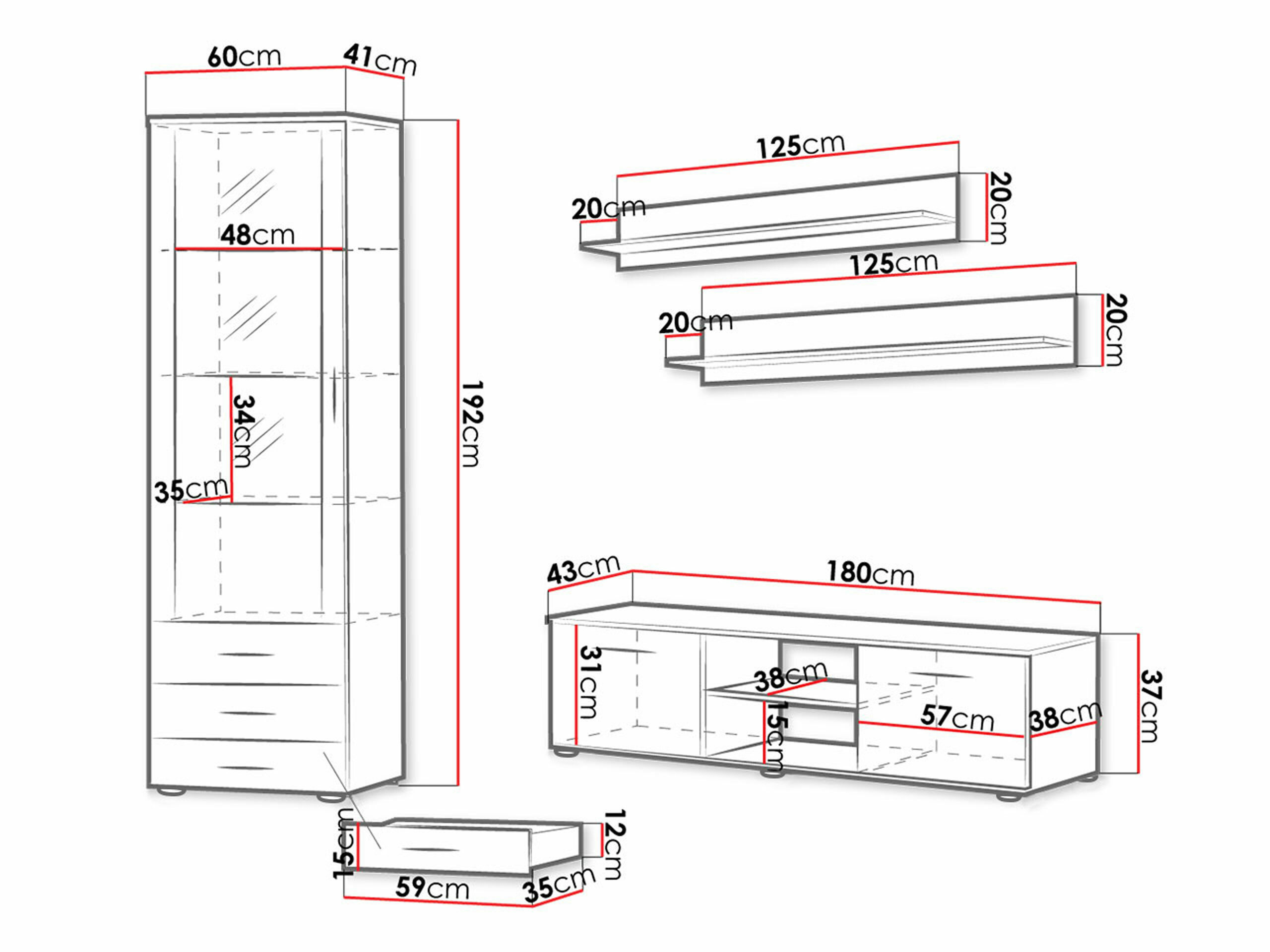 37 x 180 x 43 cm