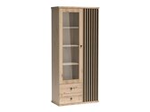 A kollekcióban a "Artisan" tölgy szín dominál, a homlokzatokon pedig a famintázat jegyei láthatók. A kis fekete fém fogantyúk tökéletesen illeszkednek az egész designba. A dekoratív függőleges vonalak a kollekció akcentusaivá válnak. Ez a megoldás exkluzív jelleget kölcsönöz a bútornak, és a bútorfogantyúkat is helyettesíti, lehetővé téve a bútorajtók nyitását. A bútorokból nem hiányoznak a polcok és fiókok, amelyek segítenek a legfontosabb dolgok tárolásában. A bútorokba egy csendes záródási mechanizmus került beépítésre, ami azért különleges, mert megvédi az ajtókat és a fiókokat a gyors záródástól. A speciális lengéscsillapítóknak köszönhetően az ajtók és fiókok közvetlenül zárás előtt megállnak, és lassan visszahúzódnak anélkül, hogy zajt okoznának. A szekrénytől a vitrinig, a TV-asztaltól a függőpolcig, ebben a kollekcióban sokféle nappali bútor található. Ha nagy erőfeszítés nélkül szeretne teljes enteriőrt kialakítani, válasszon bútorkészletet.