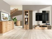 A kollekcióban a "Artisan" tölgy szín dominál, a homlokzatokon pedig a famintázat jegyei láthatók. A kis fekete fém fogantyúk tökéletesen illeszkednek az egész designba. A dekoratív függőleges vonalak a kollekció akcentusaivá válnak. Ez a megoldás exkluzív jelleget kölcsönöz a bútornak, és a bútorfogantyúkat is helyettesíti, lehetővé téve a bútorajtók nyitását. A bútorokból nem hiányoznak a polcok és fiókok, amelyek segítenek a legfontosabb dolgok tárolásában. A bútorokba egy csendes záródási mechanizmus került beépítésre, ami azért különleges, mert megvédi az ajtókat és a fiókokat a gyors záródástól. A speciális lengéscsillapítóknak köszönhetően az ajtók és fiókok közvetlenül zárás előtt megállnak, és lassan visszahúzódnak anélkül, hogy zajt okoznának. A szekrénytől a vitrinig, a TV-asztaltól a függőpolcig, ebben a kollekcióban sokféle nappali bútor található. Ha nagy erőfeszítés nélkül szeretne teljes enteriőrt kialakítani, válasszon bútorkészletet.