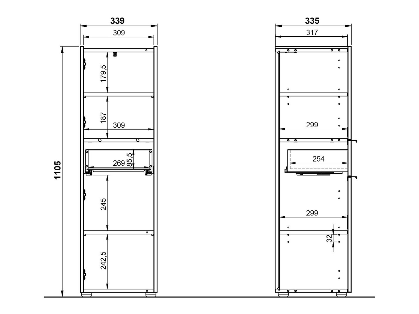 97.7 x 55.8 x 33.4; 110.5 x 33.9 x 33.5 cm