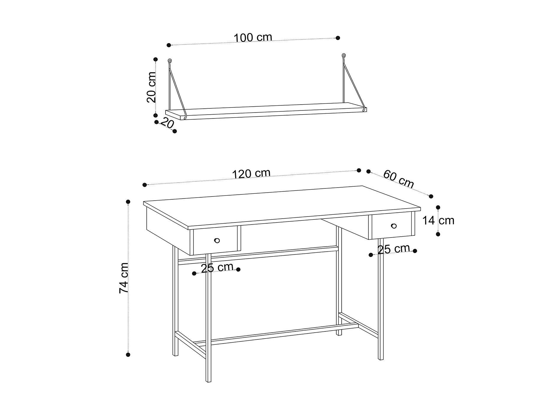 20 x 100 x 20 cm