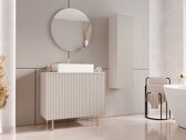 A belsőépítészetben gyakran a részletek teremtenek egyediséget. Ezek a végső simítások karaktert adnak a térnek, és segítenek a házat otthonná alakítani. Ez a bútorkollekció éppen ezen az elven alapszik. Itt a finom elegancia párosul az átgondolt funkcionalitással, lehetővé téve, hogy az otthon különböző területein egységes és harmonikus megjelenést teremtsen. A barázdált és lécezett felületek autentikus érzetet kölcsönöznek a kialakításnak,míg az arany színű fém fogantyúk és a kiválasztott darabok diszkrét érintéses nyitómechanizmusai segítik a letisztult, egységes esztétika megőrzését. A magas fém lábak úgy lettek kialakítva, hogy robotporszívók is elférjenek alattuk, a nyitott és zárt tárolóelemek kombinációja pedig könnyű, rendezett életet biztosít. Ez a kollekció könnyedén illeszkedik a modern klasszikus belső terekbe, és finom, mégis feltűnő hangsúlyt ad az otthonnak.