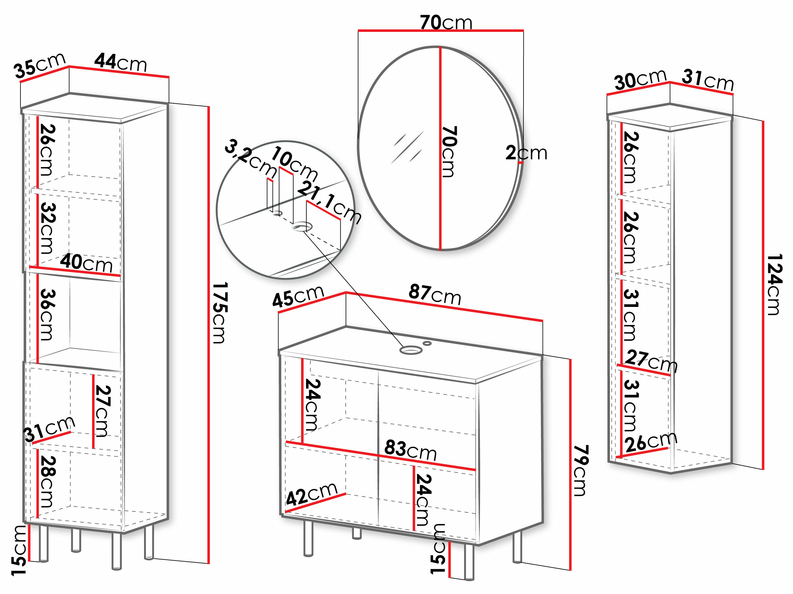Mosdószekrény méretei: