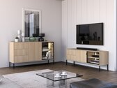 Ezek a kortárs stílusú bútorok letisztult vonalaikkal és kifinomult esztétikájukkal tűnnek ki, így könnyedén beilleszkednek a legkülönbözőbb stílusú belső terekbe. A minimalista fogantyúk kényelmes nyomógombos mechanizmussal párosulnak, így az elülső felületek vizuálisan egységesek és letisztultak maradnak. A beépített lágy záródású rendszer garantálja az ajtók és fiókok lassú és sima becsukódását. A polcokba beépített LED-es világítás extra melegséget és modernitást kölcsönöz, finoman megvilágítva a teret és kiemelve a bútorok tervezési részleteit. Kiváló választás azok számára, akik olyan bútorokat keresnek, amelyek ötvözik a funkcionalitást az elegáns dizájnnal.