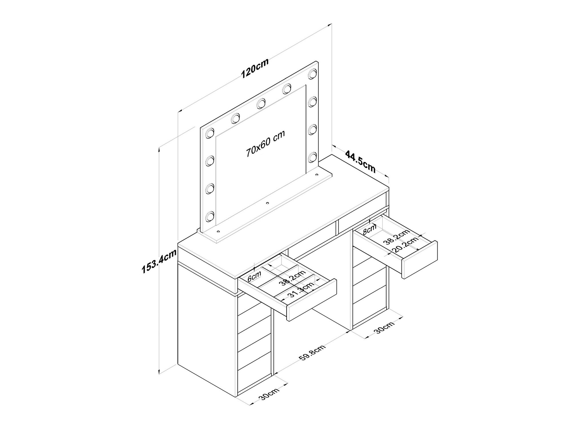 Tükör méretei: