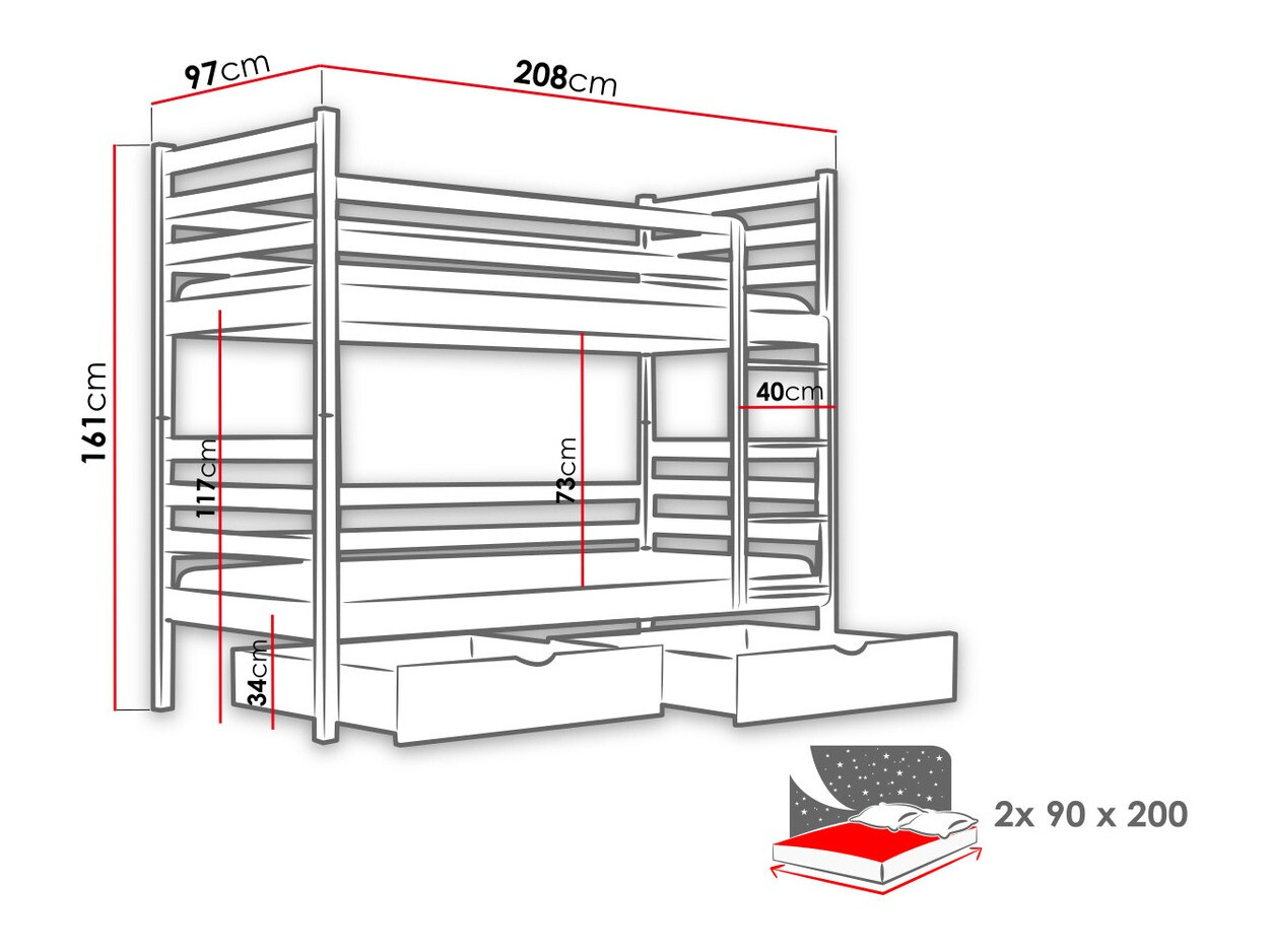 - 90 x 200 cm
