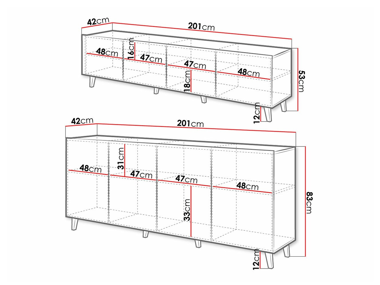 53 x 201 x 42 cm