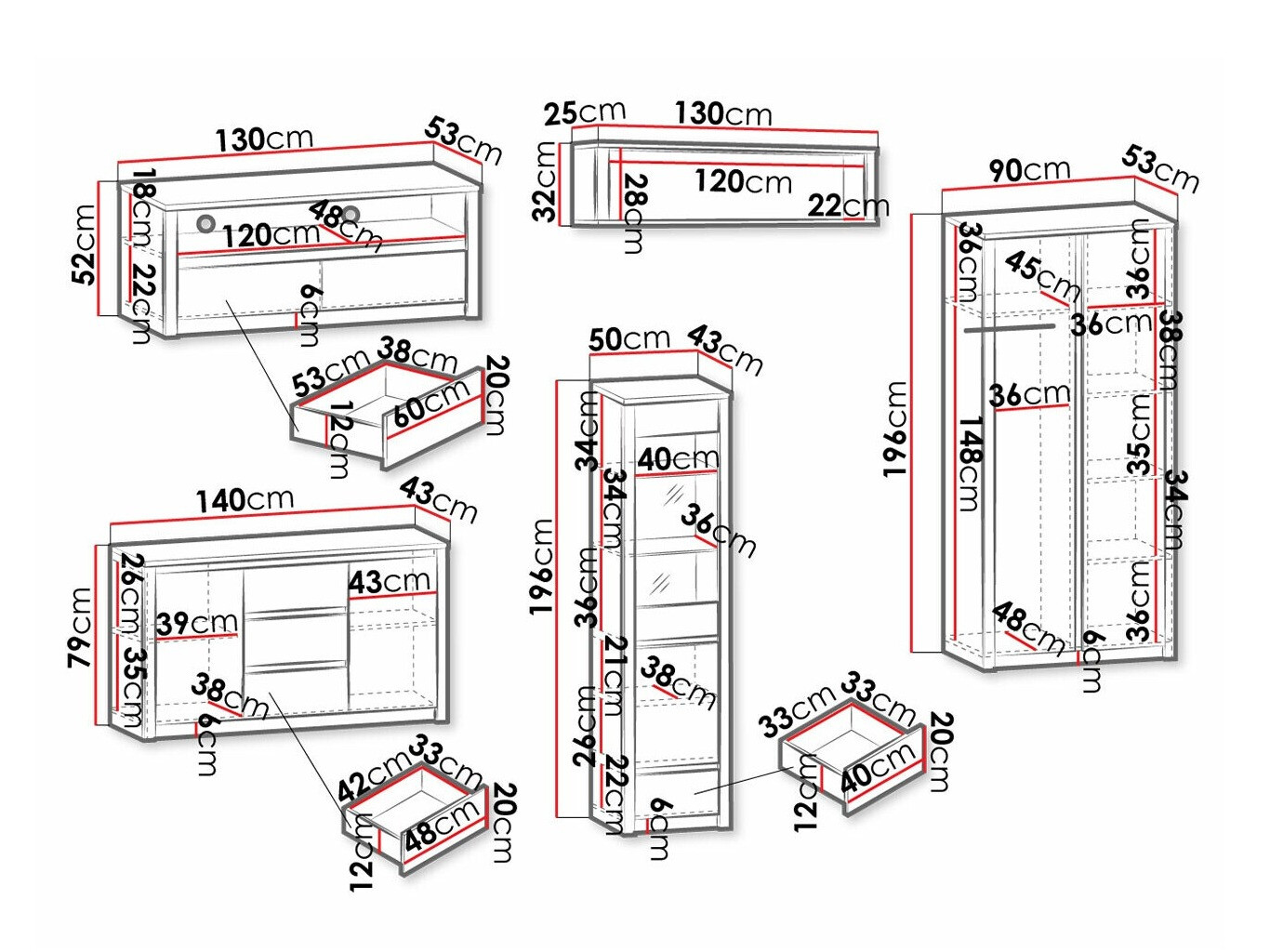 196 x 90 x 53 cm